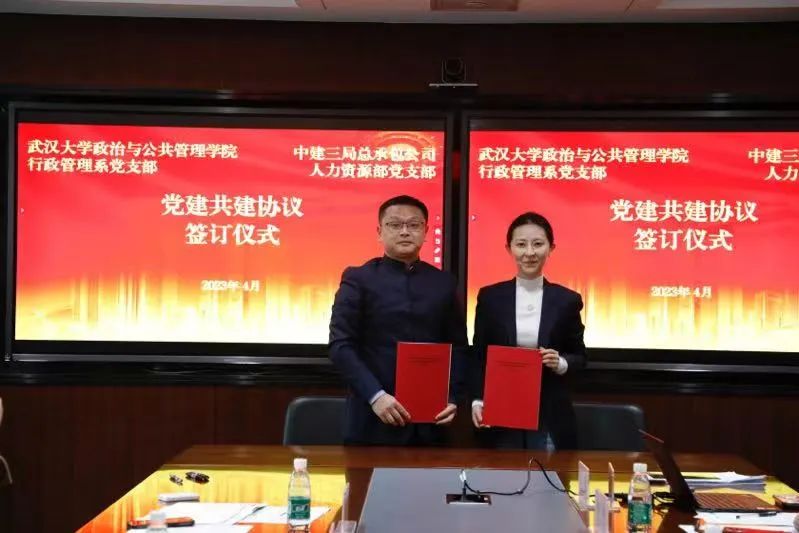 交流會(hui) 上,世界杯直播网與(yu) 中建三局總承包公司共建校企協同育人基地,同時,2026年世界杯时间赛程直播行政管理係教職工黨(dang) 支部與(yu) 中建三局總承包公司人力資源部黨(dang) 支部結對共建,雙方簽訂了黨(dang) 建共建協約。