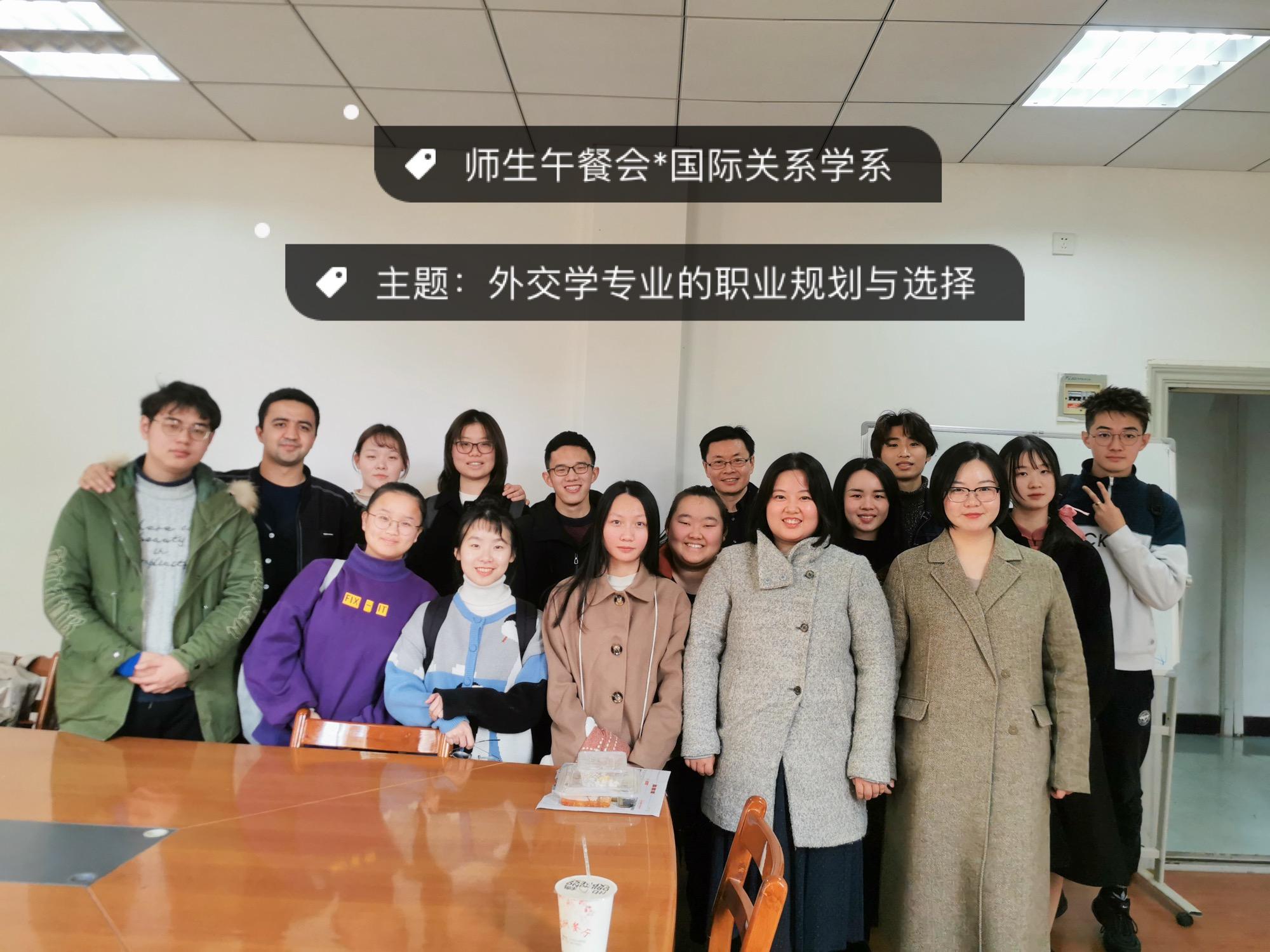 12月13日中午,國際關(guan) 係學係外交學專(zhuan) 業(ye) 第一次師生午餐會(hui) 在愉快輕鬆的氛圍下召開。2010級畢業(ye) 生汪辛夷學姐受邀做了求學求職經曆的分享。國際關(guan) 係學係係主任馮(feng) 存萬(wan) 老師、輔導員黃軼雯老師,以及十餘(yu) 名外交學專(zhuan) 業(ye) 學子參加了本次師生午餐會(hui) 。汪辛夷學姐為(wei) 在場的十多位外交學學弟學妹們(men) 分享她在學生階段的學習(xi) 以及畢業(ye) 後工作中經曆,結合這些經曆,給同學們(men) 帶來了許多她對於(yu) 升學、工作、職業(ye) 規劃方麵的建議。