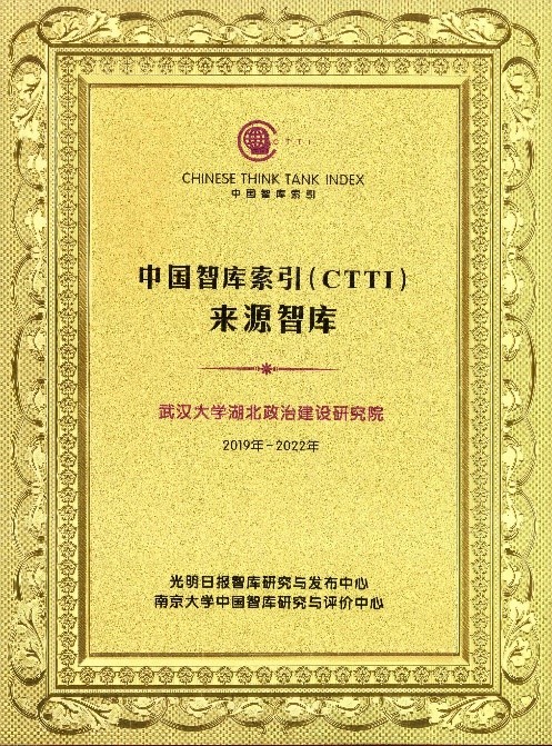 2019年12月19日,新一輪“中國智庫索引”(CTTI)新增智庫名錄發布,我院智庫武漢大學湖北政治建設研究院成功入選。至此,我院共有3所機構入選(另外兩(liang) 所為(wei) 武漢大學社會(hui) 保障研究中心、武漢大學經濟外交研究中心)。