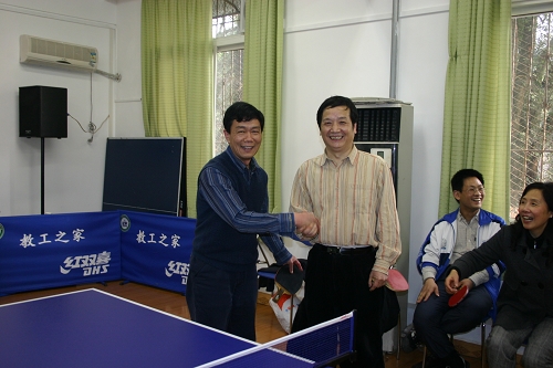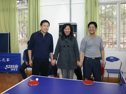 2009年3月13日下午,武漢大學珞珈學院教工乒乓球隊一行十餘(yu) 人,由劉國副院長和黃甫清副院長帶隊,蒞臨(lin) 我院交流訪問。院黨(dang) 委副書(shu) 記、工會(hui) 主席陳滔滔率院教工乒乓球隊全體(ti) 隊員與(yu) 客人舉(ju) 行了一場別開生麵的友誼賽。根據賽前雙方協商,兩(liang) 隊各上場3名男隊員及2名女隊員。比賽過程驚險激烈、精彩紛呈,吸引了眾(zhong) 多師生前往觀戰。最終我院教工代表隊挾主場之利,以3 : 2 險勝。