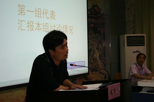 袁銀傳(chuan) 教授向大會(hui) 匯報第一組討論情況