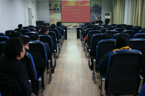 2009年11月26日下午,學院五個(ge) 教職工黨(dang) 支部組織開展了學習(xi) 十七屆四中全會(hui) 《決(jue) 定》的專(zhuan) 題組織生活,本次活動是院黨(dang) 委貫徹落實武大黨(dang) 字[2009]67號文件《關(guan) 於(yu) 認真學習(xi) 貫徹黨(dang) 的十七屆四中全會(hui) 精神的通知》精神的重要舉(ju) 措之一。
