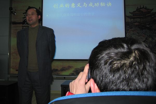 12月23日晚七點,武漢市教育局副局長、武漢市創業(ye) 導師團團長田文江博士應邀來到我院,在310多媒體(ti) 教室,給政管學子帶來了一場題為(wei) “大學生創業(ye) ”的精彩講座。勞動與(yu) 社會(hui) 保障專(zhuan) 業(ye) 楊海文老師主持講座。