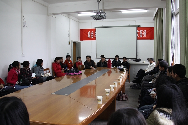 參加座談會(hui) 的院係領導和專(zhuan) 家還有學院黨(dang) 委副書(shu) 記袁麗(li) 華,外交學專(zhuan) 業(ye) 嚴(yan) 雙伍教授、馮(feng) 存萬(wan) 、戴紅霞、申紅果博士,行政管理專(zhuan) 業(ye) 丁煌教授,各係、教研室負責人:陳剛、沈曉、張奇林、向運華、石超明、金筱萍等老師,本科生工作辦公室全體(ti) 老師及輔導員老師,以及各年級班班長、學習(xi) 委員、學習(xi) 部成員近50名學生代表參加座談。