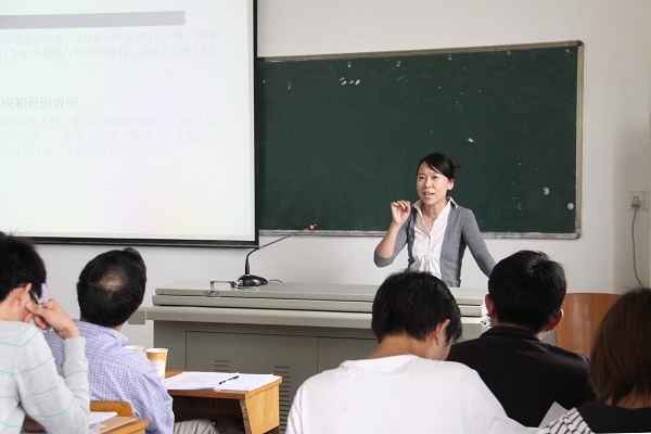 參賽教師按照抽簽順序先後進行了為(wei) 時15分鍾的教學展示。比賽中,參賽教師選題豐(feng) 富,既有“社會(hui) 主義(yi) 基本經濟製度的確立”、“ 認識是主體(ti) 對客體(ti) 的能動反映” 等基本原理的講解,又有“微時代語境下的思想政治工作”、“ 西方國家選區劃分及計票”、“培訓需求分析” 等與(yu) 經濟社會(hui) 發展緊密聯係的選題;既有“墨子的政治思想”、“經典現實主義(yi) ”等基本概念的闡述,又有“中央極限定理”、“層次分析法”等概率統計、邏輯推理的講解,還有“社會(hui) 保障的新概念框架”專(zhuan) 業(ye) 英語的雙語教學展示;更有“以史為(wei) 鑒,麵向未來——日本侵華戰爭(zheng) 的反思” 、“五四時期馬克思主義(yi) 的傳(chuan) 播”、“民族精神中的自強不息”、“ 中國抗日戰爭(zheng) 勝利的原因”等弘揚社會(hui) 主義(yi) 核心價(jia) 值觀體(ti) 係的選題。在教學方法上,有的教師深入淺出、娓娓道來、一氣嗬成;有的教師案例教學,現場提問,師生互動;全部教師都準備充分,專(zhuan) 門為(wei) 競賽活動製作了精美的PPT,圖文並茂與(yu) 教學內(nei) 容和板書(shu) 相互補充、切換,使評委和聽眾(zhong) 如身臨(lin) 教學課堂其境。每位教師都在規定的模擬課堂教學時間內(nei) ,清晰完整地展示了自己的教學風格和特點,充分展示了我院青年教師高度重視本次教學競賽,專(zhuan) 業(ye) 素質高、基本功底紮實和積極參與(yu) 、拚搏進取的良好精神風貌。