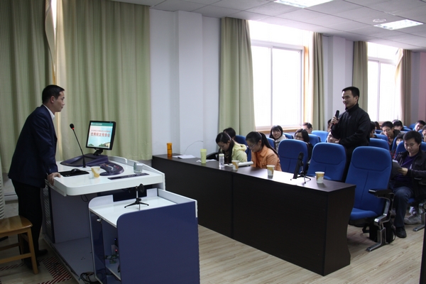 (吳朝安在作報告並與(yu) 學生交流互動)