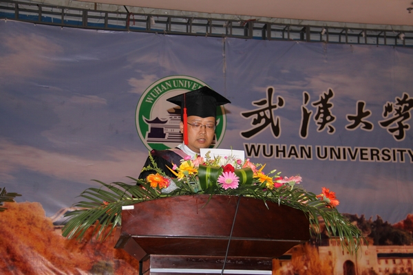 本科畢業(ye) 生代表閆明明、碩士畢業(ye) 生代表朱麗(li) 、博士畢業(ye) 生代表汪濱分別發言,感謝老師們(men) 的諄諄教導,感謝父母的養(yang) 育之恩,表達了對母校無法釋懷的依戀。閆明明說,“教我們(men) 知識與(yu) 做人的老師們(men) ,我們(men) 是多麽(me) 的不想離開,四年的恩情尚未回報,我們(men) 會(hui) 回來,帶著一身塵土與(yu) 榮耀”。朱麗(li) 說,“我們(men) 的未來有著無限的可能,我們(men) 要到生活的星圖上去尋找自己的新位置,但是無論我們(men) 最後處在什麽(me) 位置,我們(men) 都有一個(ge) 共同的稱號,那就是武大政管人。”汪濱說,“今天,我們(men) 已經完成學業(ye) ,即將離開這美麗(li) 的校園,但這不是人生奮鬥的終點,而是開創未來、邁向更高層次追求的新起點。”在校生代表張淼同學對學長學姐們(men) 的畢業(ye) 表達了美好的祝願和感激之情。