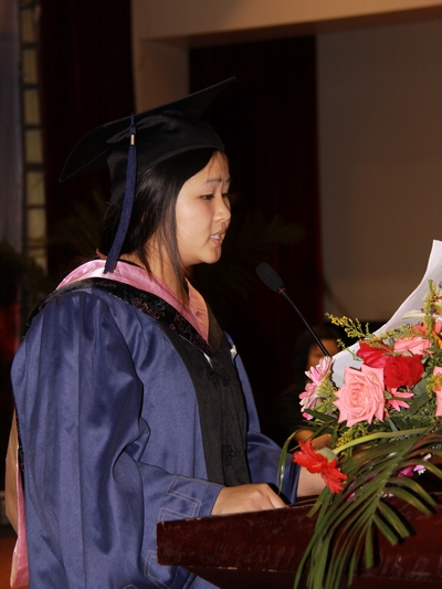 碩士畢業(ye) 生代表朱麗(li) 同學發言