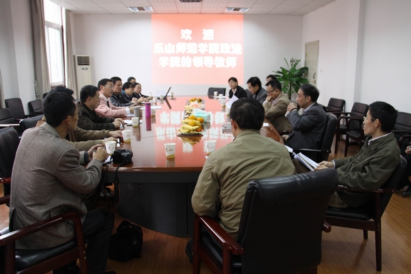 10月27日下午,樂(le) 山師範學院政法學院唐淮書(shu) 記一行8人來我院參觀考察,就該院“十二五”學科建設規劃、專(zhuan) 業(ye) 建設及科研項目申報等聽取我院相關(guan) 領導、老師的意見和建議。院黨(dang) 委書(shu) 記尤傳(chuan) 明、院長鄧大鬆,行政管理係係主任陳世香、公共經濟與(yu) 社會(hui) 保障係係主任張奇林,教師王少輝、劉偉(wei) 兵出席座談,副院長嚴(yan) 雙伍主持會(hui) 議。(黨(dang) 政辦公室供稿)