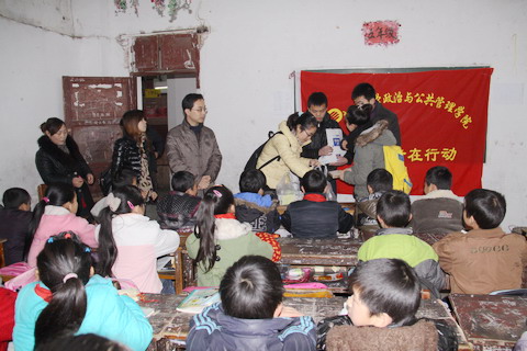 立新小學是我院於(yu) 2007年設立的青年誌願者服務基地,就讀學生均是來漢務工的農(nong) 民工子弟。5年來,已有累計2000多人次的學生參與(yu) 到立新小學義(yi) 務送教送書(shu) 的活動中去。每個(ge) 周末學院青年誌願者協會(hui) 都會(hui) 組織同學們(men) 乘車兩(liang) 個(ge) 多小時前往學校教授英語、繪畫等課程,從(cong) 未曾間斷。每年都會(hui) 通過義(yi) 賣、募捐等方式為(wei) 立新小學的學生們(men) 購買(mai) 書(shu) 籍、體(ti) 育用品等改善他們(men) 的課餘(yu) 活動條件。
