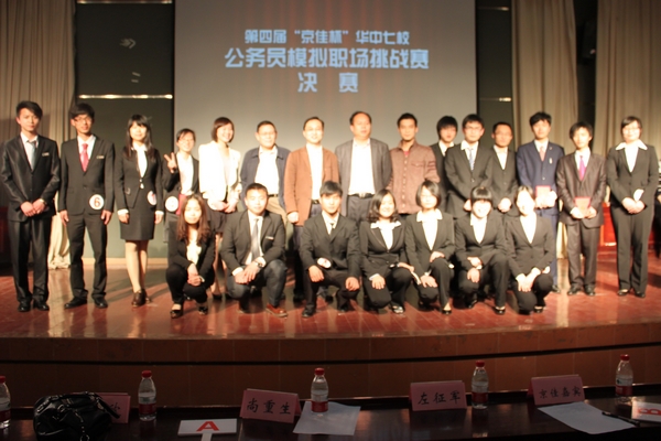 3月31日晚,第四屆華中七校公務員模擬職場挑戰賽決(jue) 賽在教五多功能報告廳隆重舉(ju) 行,從(cong) 200支初賽隊伍中脫穎而出的6支隊伍在這裏一決(jue) 高下。學院黨(dang) 委副書(shu) 記左征軍(jun) ,尚重生老師,學生輔導員和相關(guan) 組織院係的學生會(hui) 負責人應邀參與(yu) 本次活動。