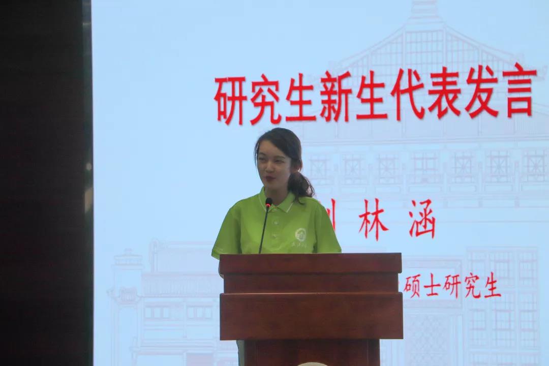 儀(yi) 式第三項,由政治學與(yu) 行政學係劉偉(wei) 教授作為(wei) 代表教師發言,他幽默而不失睿智的發言引得同學們(men) 笑語連連。劉偉(wei) 教授告誡新生們(men) ,要涵養(yang) 深沉的家國情懷,扛起厚重的責任擔當;要著眼中國,放眼四海,以開闊的眼界與(yu) 世界相連,以深邃的思想探求真理;要洗盡鉛華,返璞歸真,以熱忱的態度回歸學術,以求真的標準看待事物,他談到,“讀一流的書(shu) 變成二流的人,讀二流的書(shu) 變成三流的人,光讀三流的書(shu) ,就變成不入流的人”,要敢於(yu) 突破腐朽的枷鎖,大膽質疑陳舊的範式,正視挑戰,勇敢創新,不要囿於(yu) 固有的範式和結論,要有原創性的思考和判斷。劉偉(wei) 教授的諄諄教誨與(yu) 真知灼見,又為(wei) 新生們(men) 點燃了前行路上的一盞明燈。