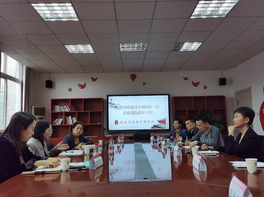 2020年9月22日,校黨(dang) 委常委、副校長吳平來學院調研工作,黨(dang) 政辦、發規辦等相關(guan) 職能部門陪同調研。學院全體(ti) 黨(dang) 政班子成員參加調研會(hui) 議。