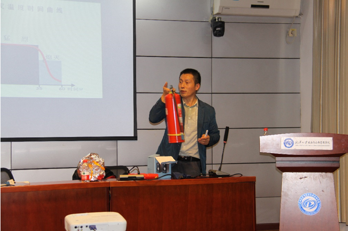 侯保臣教官通過一個(ge) 個(ge) 真實的案例,結合以往發生的典型火災事故,介紹了造成火災的主要原因以及當前的消防安全形勢,強調堅持“預防為(wei) 主,防消結合”消防方針及實行“三級責任製”的重要性。提出單位、組織必須擁有四種能力—檢查消除火災隱患的能力、組織補救初期火災的能力、組織人員疏散逃生的能力、消防宣傳(chuan) 教育培訓的能力;個(ge) 人必須遵守消防法規,要定期檢查電器電路的有效期和安全性,不亂(luan) 拉私接電線,不超負荷使用電器,不在安全通道堆放雜物,養(yang) 成“人走關(guan) 燈斷電”的良好習(xi) 慣。詳細講解了火災預防必須注意的事項、火災撲救與(yu) 逃生自救必須掌握的技能,以及發生火災後必須掌握的報警、滅火、逃生的正確方法,最後示範講解了滅火器、防煙麵具的檢查和使用方法。
