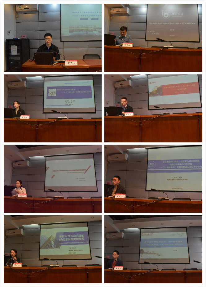 華南理工大學的王凡凡同學基於(yu) 對中國2001—2018年省級麵板數據的實證檢驗,論證地區安全生產(chan) 治理績效對官員晉升的影響。任彬彬同學是南京大學的博士生,他的交流主題是“合作型政社關(guan) 係與(yu) 社會(hui) 組織公信力:基於(yu) 政治文化的調節作用”。重慶大學的張發棟同學在充分的實地調研基礎上,探究城管矛盾的有效治理與(yu) “四個(ge) 治理”之間的關(guan) 係及其呈現。西南大學的博士生宋維誌同學,從(cong) 河長製出發,詳盡討論了常規化運動式治理的方法、困境與(yu) 出路。作為(wei) 武漢大學的碩士生,李葉同學的研究立足本地,通過對“新冠肺炎”疫情期間@武漢發布的實證分析,探討突發公共衛生事件中政務微博網絡輿情應對機製。同濟大學的王磊同學也著眼於(yu) “新冠肺炎”疫情,他首先對武漢市紅十字會(hui) 結構、管理與(yu) 運作過程等方麵進行解構,進而分析技術嵌入城市應急管理的行動策略與(yu) 內(nei) 在邏輯,試圖探究容災係統如何建立。來自於(yu) 武漢大學的翁俊芳同學,以H街道四個(ge) 社區的業(ye) 委會(hui) 與(yu) 物業(ye) 管理運作作為(wei) 研究對象,試圖在國家—市場—社會(hui) 三維分析視角下,解構社區內(nei) 三大主體(ti) 曆練互動產(chan) 生的“半嵌入行互動治理”形態。中國人民大學的鄧正陽同學,在田野靈感與(yu) 文獻梳理基礎上提出“現象—事實—理解”的初步研究進路,並通過案例分析建構一個(ge) 理解中國鄉(xiang) 村治理的整合性分析框架“組織重塑—利益聯結—合作性鄉(xiang) 村治理”,各位獲獎者在具體(ti) 實例研究的基礎上,采用定量分析、構建模型與(yu) 框架的研究方法,聚焦於(yu) “新冠肺炎”疫情、政社關(guan) 係、鄉(xiang) 村治理、社區治理等時政熱點問題,深度解析當前中國國家治理的現狀,積極探求國家治理現代化途徑,為(wei) 與(yu) 會(hui) 人員呈現一場知識盛宴。最後點評組組長劉偉(wei) 老師做總結發言,鼓勵同學們(men) 以多元化的視角探討更為(wei) 深層次的理論命題,更要緊扣中國實際,做出具有中國特色的大學問。