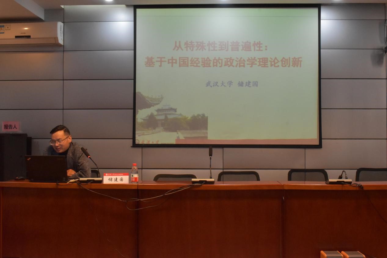 在30日上午進行的專(zhuan) 家報告會(hui) 上,儲(chu) 建國教授就本次會(hui) 議議題及相關(guan) 學科前沿研究作了精彩報告。儲(chu) 建國教授以“從(cong) 特殊性到普遍性:基於(yu) 中國經驗的政治學理論創新”為(wei) 題進行了報告,首先闡述了馬克思、韋伯、孔子的三種普遍性,再分析了馬克思普遍性下的中國特殊性和韋伯普遍性下的中國特殊性,最後講述了中國特殊性的自我言說。中國經驗不僅(jin) 可以總結出講述自己特殊故事的理論,也可以總結出包含普遍性規律的理論。