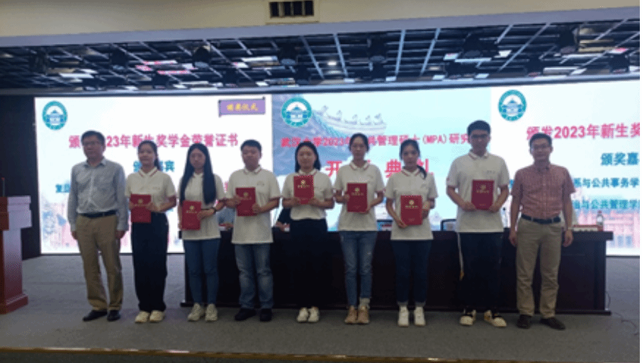 開學典禮上,陳世香教授宣布了武漢大學2023級研究生新生獎學金獲獎名單和2022-2023學年度MPA研究生優(you) 秀班幹部名單。朱春奎、劉偉(wei) 、王增文、呂普生教授為(wei) 獲獎同學頒發了榮譽證書(shu) 。