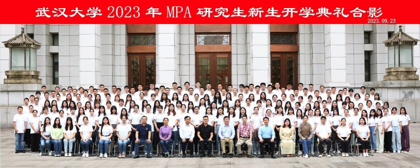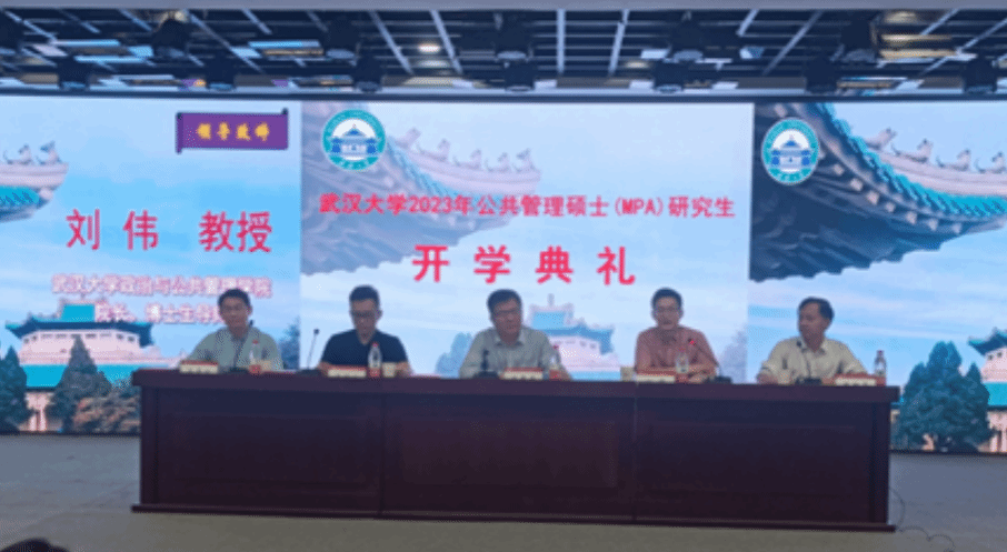 2023年9月23日,武漢大學2023年公共管理碩士(MPA)研究生開學典禮暨學術報告會(hui) 在武漢大學圖書(shu) 館報告廳隆重舉(ju) 行。全國公共管理專(zhuan) 業(ye) 學位研究生教育指導委員會(hui) 委員、複旦大學國際關(guan) 係與(yu) 公共事務學院博士生導師朱春奎教授,世界杯直播网院長、博士生導師劉偉(wei) 教授,世界杯直播网副院長、博士生導師王增文教授,武漢大學MPA教育中心主任、博士生導師陳世香教授,世界杯直播网MPA教師代表、博士生導師呂普生教授出席典禮,部分教師和2023級全體(ti) 新生參加典禮。