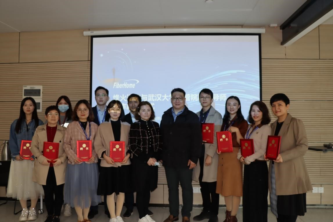 此次舉(ju) 行職業(ye) 導師合作啟動儀(yi) 式,標誌著校企協作互動工作的進一步推進以及雙方協同推進實踐教育的決(jue) 心。最後,由邢濤書(shu) 記為(wei) 烽火通信的職業(ye) 導師頒發聘書(shu) 並合影留念。