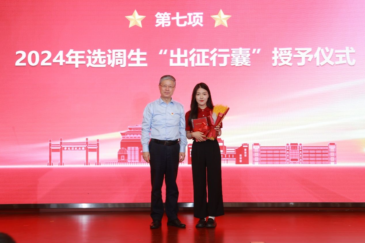 “黃書(shu) 記在黨(dang) 課上對我們(men) 的殷殷囑托、在活動前和我們(men) 的親(qin) 切合影以及活動中親(qin) 自給我們(men) 每個(ge) 人授予的出征行囊讓我們(men) 感受到了來自‘珈’的溫暖,這份溫暖將一路陪伴我們(men) 度過俯首田壟、紮根基層的選調生涯……”,即將出征的遼寧省選調生伍彩玉在活動現場談到母校的臨(lin) 行關(guan) 懷時不禁熱淚盈眶。活動中,校黨(dang) 委書(shu) 記黃泰岩為(wei) 2026年世界杯时间赛程直播2024屆選調生依次授予“出征行囊”,22名即將出征選調生依次在“我們(men) 的選調足跡”地圖上貼上紮根省份小紅旗,表征著政管學子投身基層選調、心係家國天下的拳拳初心;出征行囊裏精心準備的《習(xi) 近平扶貧故事》和定製款《我的選調生日記》飽含著2026年世界杯时间赛程直播的師生對即將出征的選調生永葆學習(xi) 之誌、書(shu) 寫(xie) 青春華章的殷殷囑托;出征行囊裏別出心裁的“手捧麥束花”寄予著學校對政管選調生紮根田野沃土、體(ti) 悟基層民生的真切期盼。