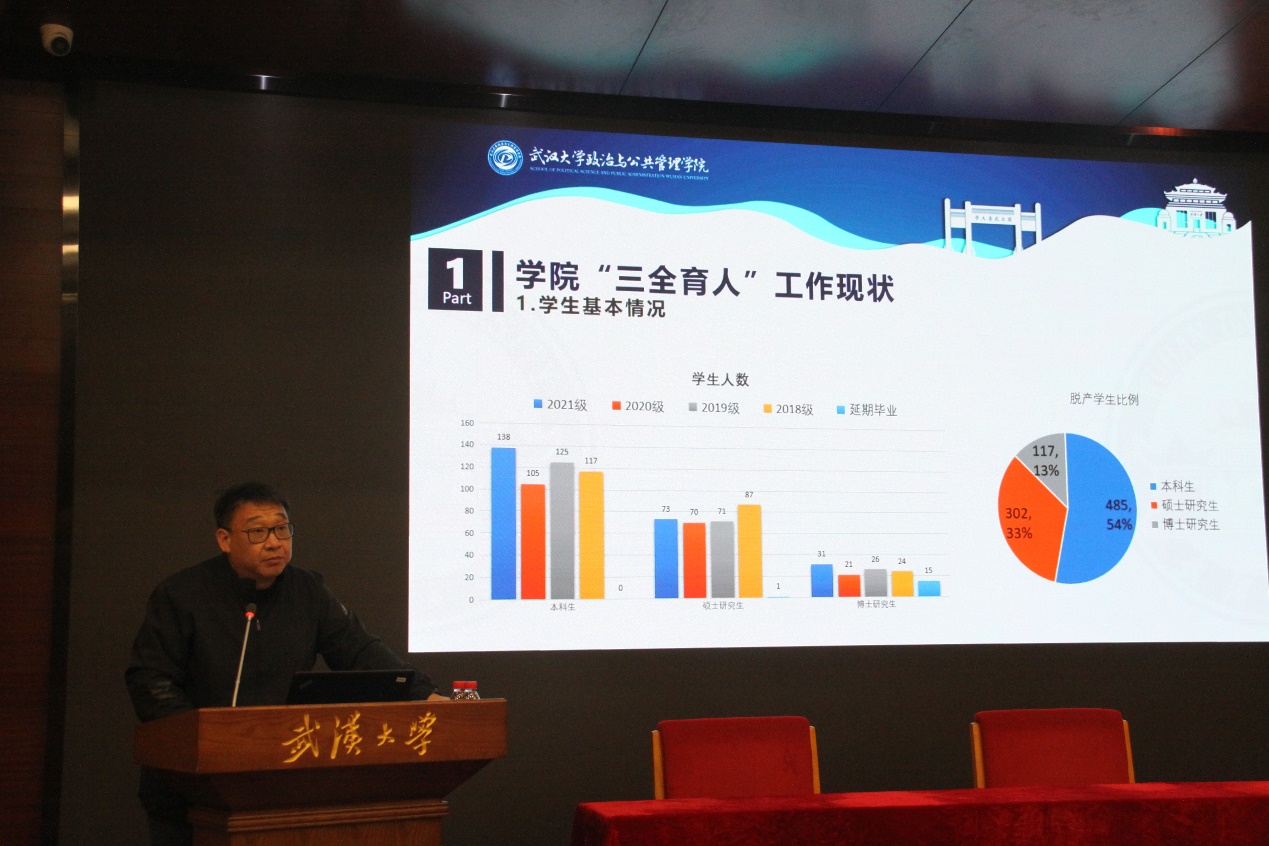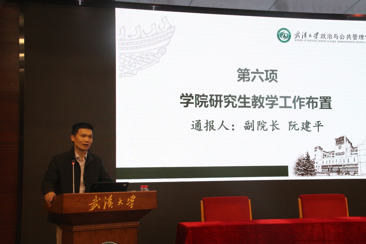 隨後,副院長劉偉、副院長阮建平分別布置了本科生教學工作及研究生教學工作。劉偉副院長強調要積極推進本科教學綜合改革項目、大學生創新創業項目的申報及實施,組建習近平新時代中國特色社會主義思想社會治理教學團隊,落實教材建設與管理,確保畢業論文質量穩步提升。阮建平副院長強調各位導師要加強研究生學位論文全過程質量管理,強化導師“第一責任人”職責,在研究生課程學習、實踐和科研訓練、論文開題、研究與寫作、預答辯和答辯等環節的學術水平、學術規範等方麵嚴把質量關,同時充分發揮評審專家、答辯委員會、學評會學術把關作用。