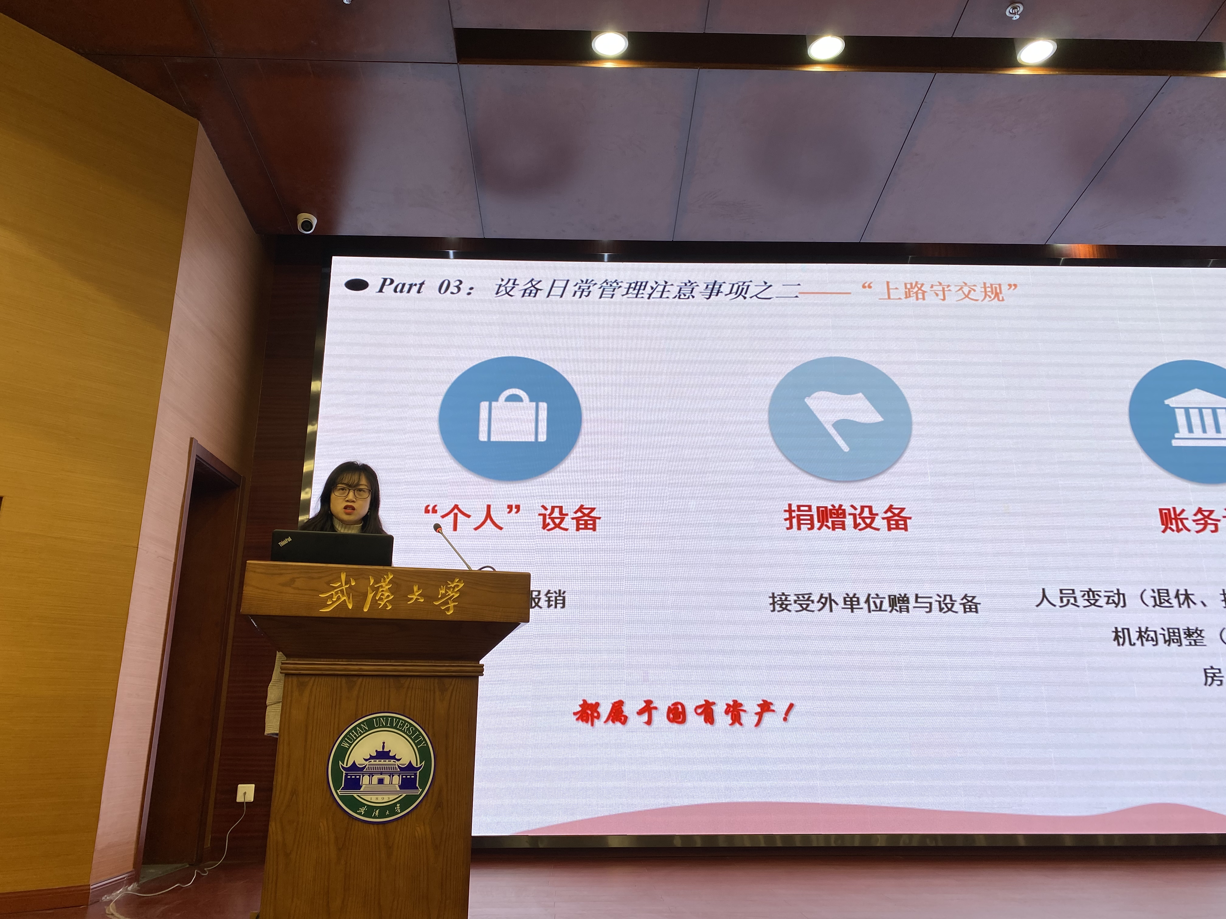 隨後,實驗室與(yu) 設備管理處設備管理辦公室主任龔彥華結合學院儀(yi) 器設備資產(chan) 的管理特點,以《規範設備管理,提升使用效益》為(wei) 題進行了宣講。宣講主要圍繞實驗室與(yu) 設備管理處的職能,介紹了國家和地方政策、學校管理體(ti) 製及規章製度。根據近年來中央巡視、教育部財政專(zhuan) 項審計工作等提出的要求,以及日常管理工作中發現的問題,深入淺出地介紹了設備使用與(yu) 管理過程中的注意事項,分享了全校儀(yi) 器設備資產(chan) 管理工作的各類案例,展示了儀(yi) 器設備信息化建設的成果,介紹了設備管理信息係統使用流程。報告結束後,實驗室與(yu) 設備管理處設備管理辦公室副主任胡穎就教職工們(men) 自身設備管理業(ye) 務中遇到的實際問題,如設備標簽張貼、設備分類、廢舊設備處理、賬務調整等具體(ti) 問題進行了現場答疑。