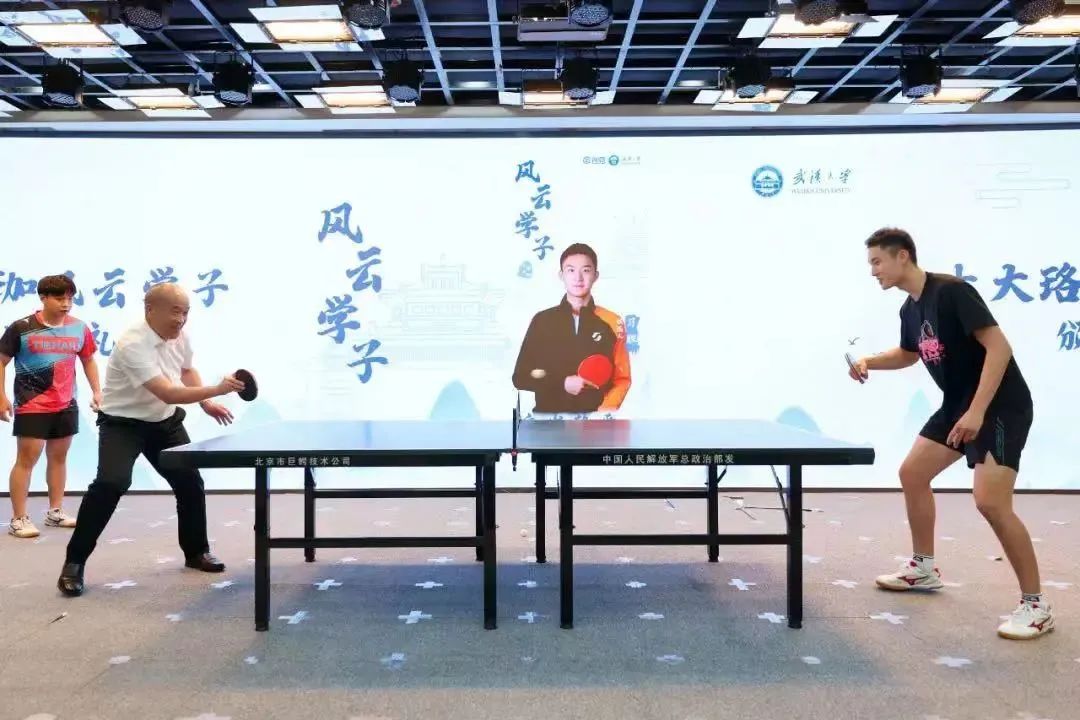 頒獎典禮現場,習(xi) 勝邀請校長竇賢康院士進行乒乓球同台競技,兩(liang) 人互有攻防,把氣氛推向了高潮。習(xi) 勝懷著激動的心情表示:“非常榮幸獲得2021年度武漢大學珞珈十大風雲(yun) 學子的稱號!這不光對我個(ge) 人來說是一種肯定,對武大體(ti) 育人來說也是一種嘉獎和認可!非常榮幸能和竇校長現場切磋,讓更多的人感受到乒乓魅力!”