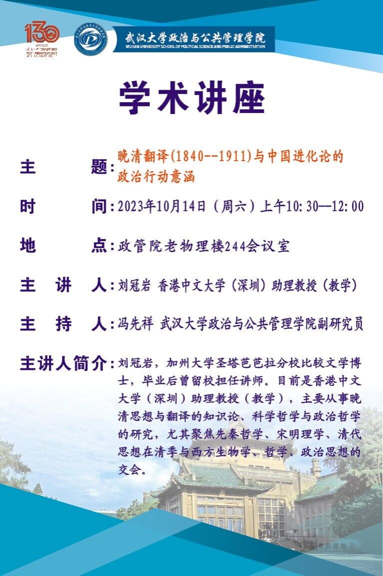 【預告】劉冠岩:晚清翻譯(1840--1911)與中國進化論的政治行動意涵-2026年世界杯时间赛程直播(新)