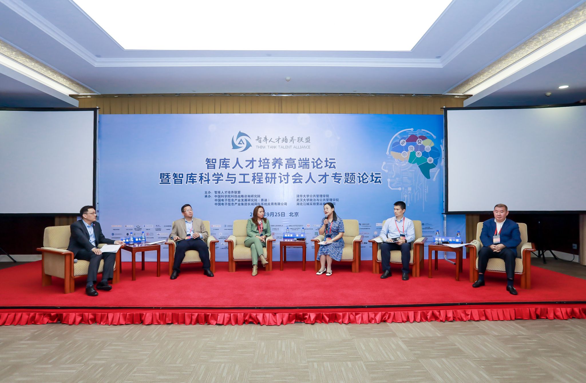 2023年9月25日,智庫人才培養(yang) 高端論壇在北京會(hui) 議中心舉(ju) 行。本次論壇由智庫人才培養(yang) 聯盟(以下簡稱聯盟)主辦,世界杯直播网聯合中國科學院科技戰略谘詢研究院、清華大學公共管理學院、中國電子信息產(chan) 業(ye) 發展研究院(賽迪)、中國電子信息產(chan) 業(ye) 集團長城網際係統應用有限公司、湖北江城實驗室戰略研究院共同承辦。來自國家高端智庫、部委智庫、軍(jun) 隊智庫、地方智庫、企業(ye) 和社會(hui) 智庫的近70餘(yu) 家聯盟成員單位,約150人參加此次論壇。