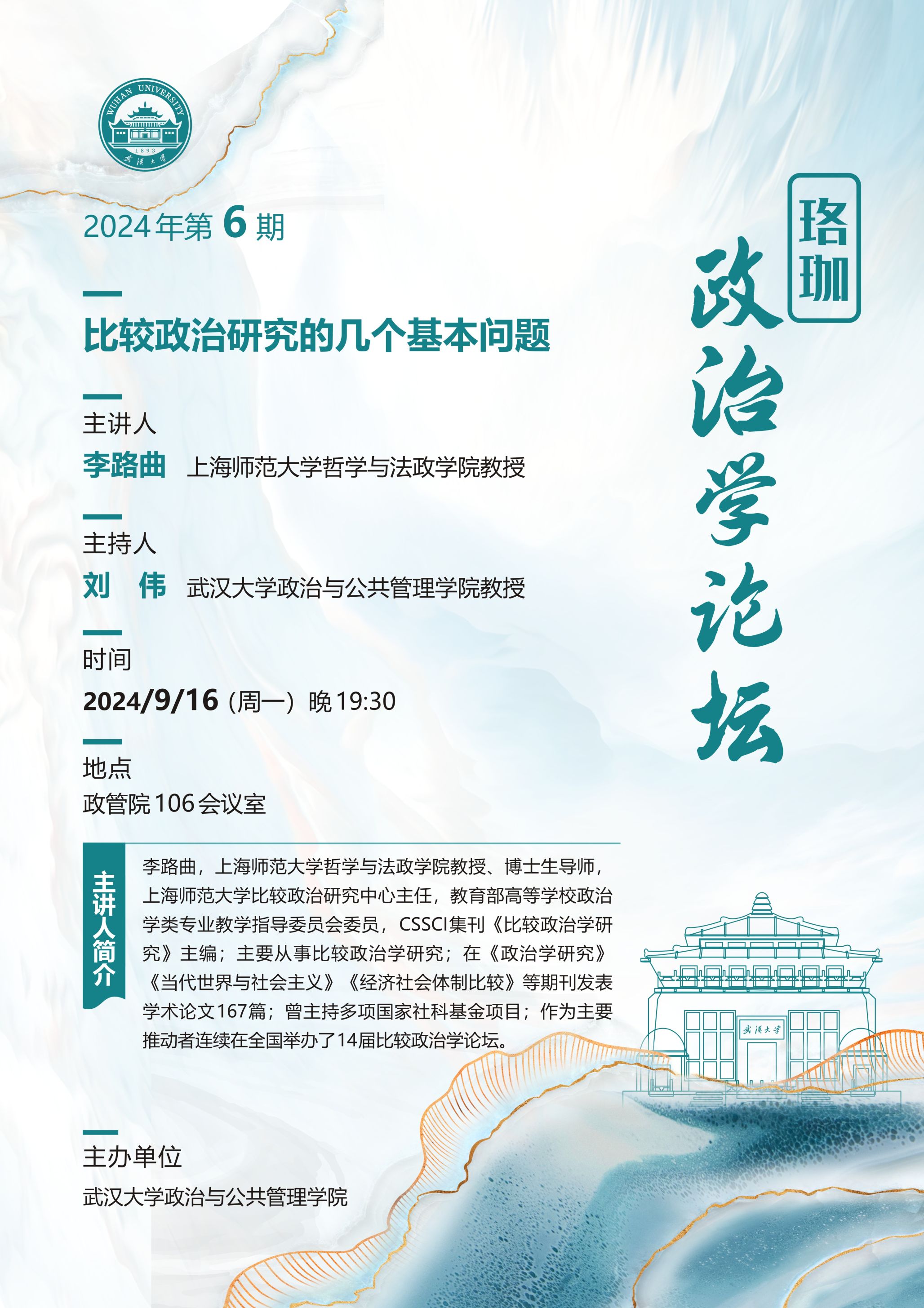【預告】珞珈政治學論壇第6期(2024年9月16日)-2026年世界杯时间赛程直播(新)