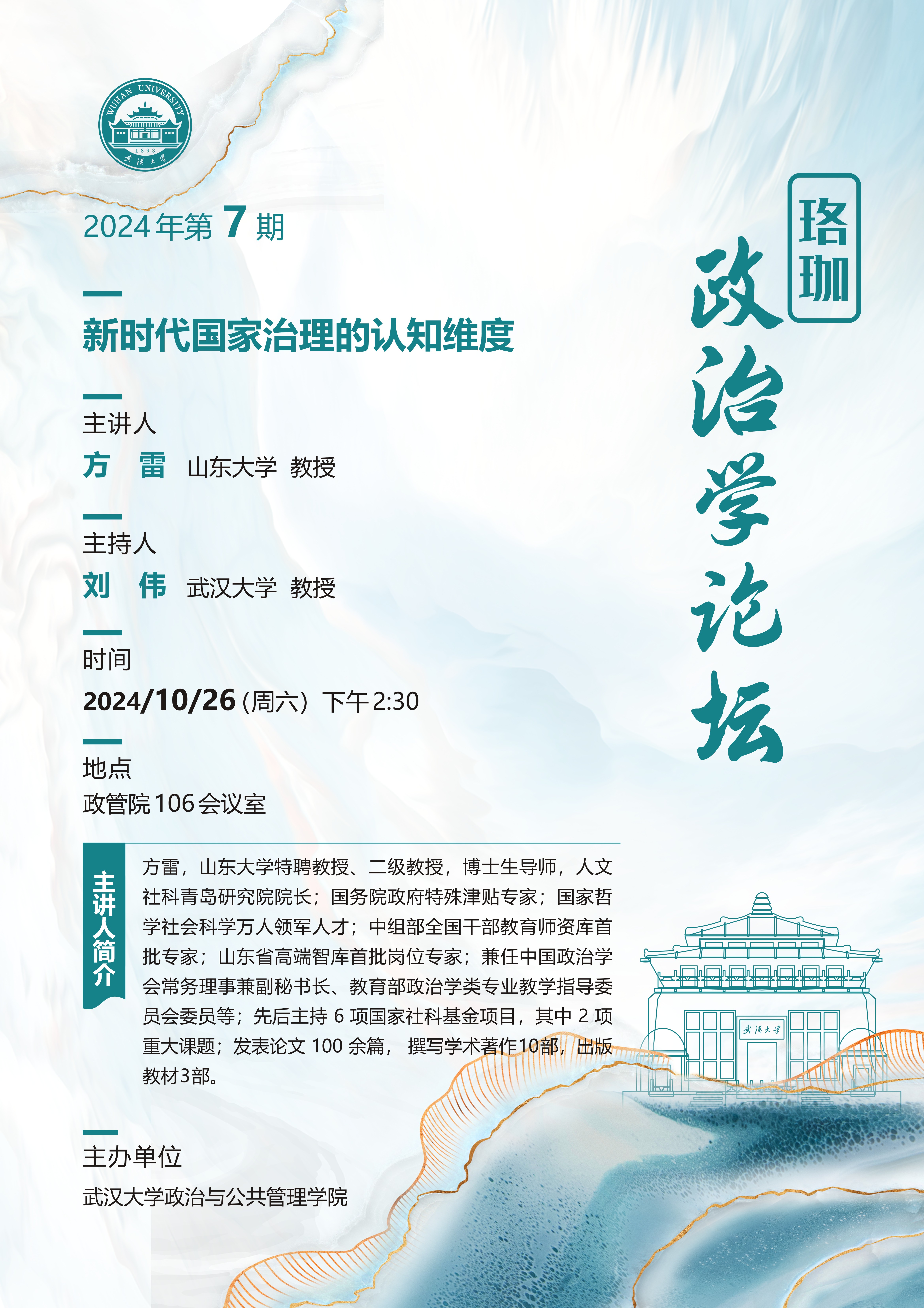 【預告】珞珈政治學論壇第7期(2024年10月26日)-2026年世界杯时间赛程直播(新)