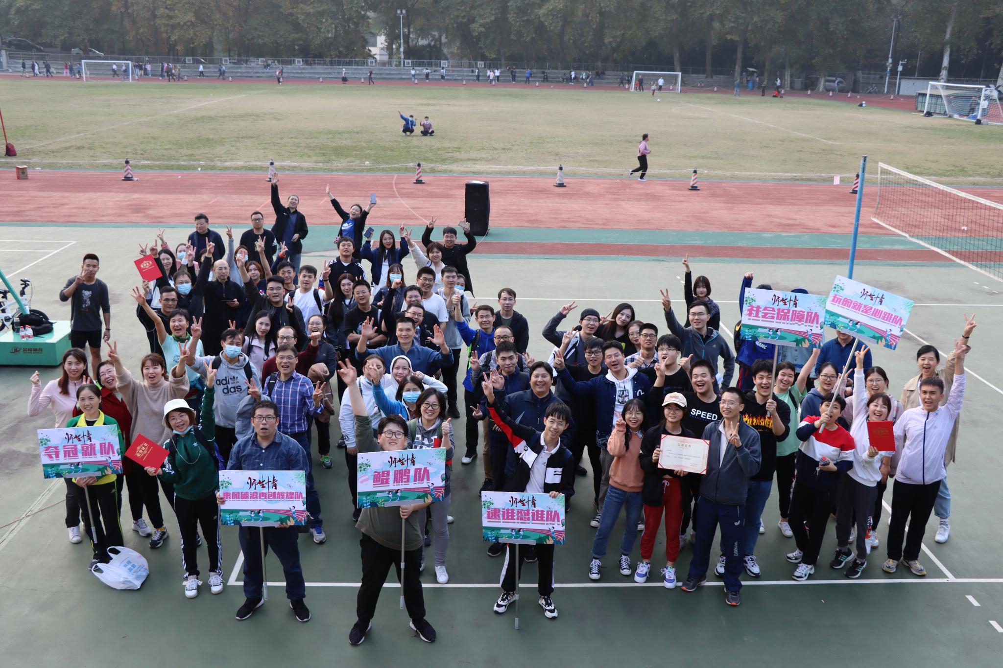 經過一番激烈的角逐,此次師生趣味運動會(hui) 的比賽告一段落。“玩的就是心跳”隊拔得頭籌,獲得一等獎;“奪冠就”隊和“社會(hui) 保障”隊獲得二等獎;“乘風破浪再創輝煌”隊、“逮誰懟誰”隊、“鯤鵬”隊獲得三等獎。隨後各隊派出代表領獎並合影留念。至此武漢大學師生趣味運動會(hui) 圓滿結束,所有參賽運動員合影留念後有序退場。