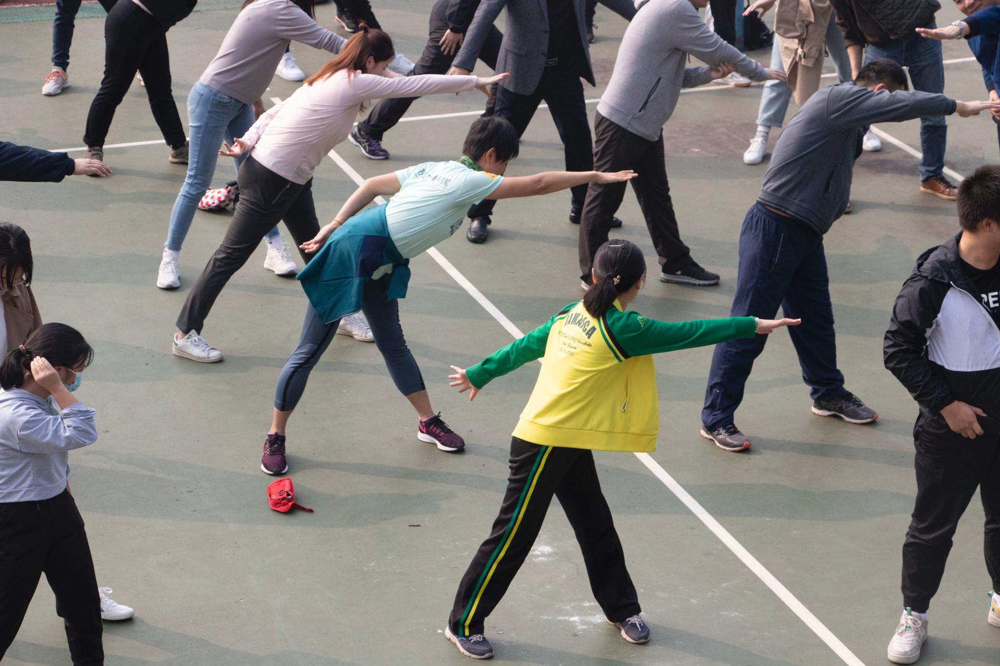 在運動會(hui) 正式開始之前,主持人帶領大家進行了熱身活動,側(ce) 壓腿、體(ti) 轉運動、弓步壓腿、高抬腿……經過一係列專(zhuan) 業(ye) 的熱身動作,大家為(wei) 接下來的運動會(hui) 做了充分的準備,抬頭挺胸,躍躍欲試。