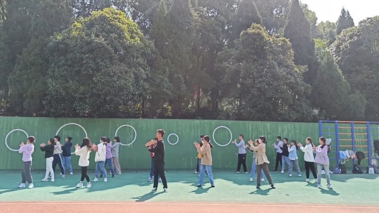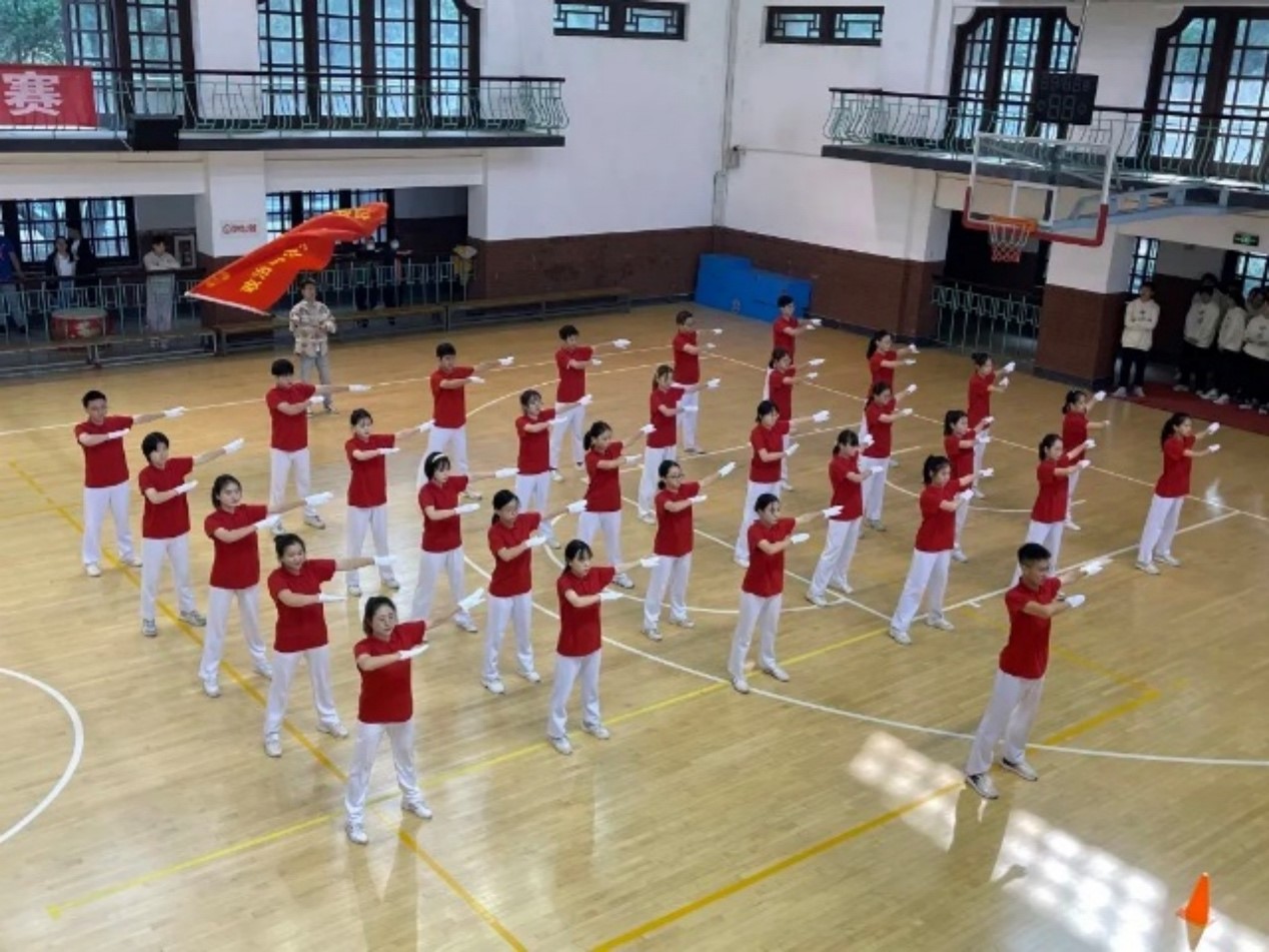 賽前,同學們(men) 積極準備,刻苦訓練。在體(ti) 育部的組織下,學長姐帶領大家進行了嚴(yan) 格而有序的訓練,大到集體(ti) 的整齊與(yu) 否、動作的標準程度,小至開合的幅度,手掌的角度,從(cong) 整體(ti) 到細節,不放過一絲(si) 一毫,精雕細琢,玉吾於(yu) 成。