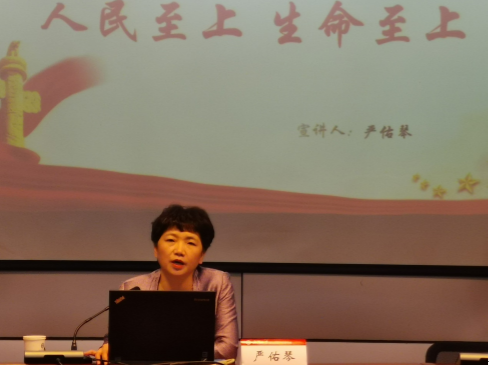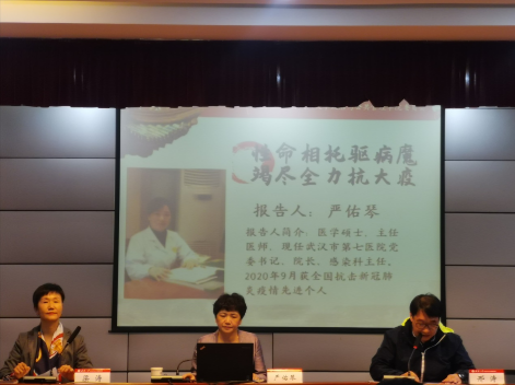新冠肺炎疫情防控,是一場保衛人民群眾(zhong) 生命安全和身體(ti) 健康的嚴(yan) 峻鬥爭(zheng) 。疾風知勁草,烈火煉真金,全國廣大醫務工作者響應黨(dang) 的號召,義(yi) 無反顧衝(chong) 上疫情防控第一線。為(wei) 了大力弘揚“大醫精誠,大愛無垠”的抗疫精神,深刻理解習(xi) 近平總書(shu) 記關(guan) 於(yu) “人民至上,生命至上”的宗旨信念,增進學院師生對抗疫期間醫護人員珍惜生命、愛護生命、尊重生命的深刻認識,10月15日,學院開展了以“性命相托驅病魔,竭盡全力抗大疫”為(wei) 主題的集中學習(xi) 活動。學習(xi) 活動邀請到武漢市第七醫院黨(dang) 委書(shu) 記、院長、感染科主任、全國抗擊新冠肺炎疫情先進個(ge) 人嚴(yan) 佑琴院長擔任主講人,學院全體(ti) 教職工黨(dang) 員、部分黨(dang) 員學生代表參加集中學習(xi) 。