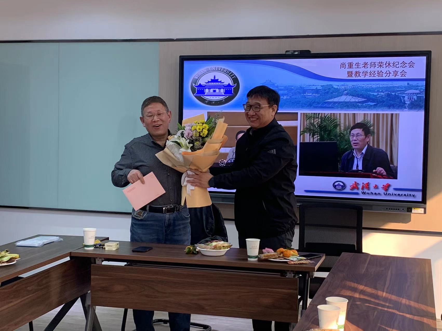 會(hui) 議開始,邢濤副書(shu) 記代表學院對尚重生老師在教學上的辛苦付出和為(wei) 學院培養(yang) 了很多優(you) 秀學生表示感謝,並送上鮮花表達祝福,祝願尚老師退休後能以新的生活狀態開開心心地過好每一天,並希望他能繼續關(guan) 心和支持學院發展。