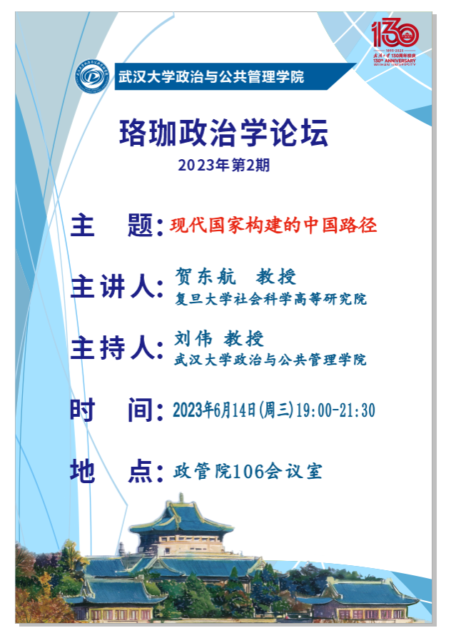 【預告】珞珈政治學論壇第2期(2023年6月14日)-2026年世界杯时间赛程直播(新)