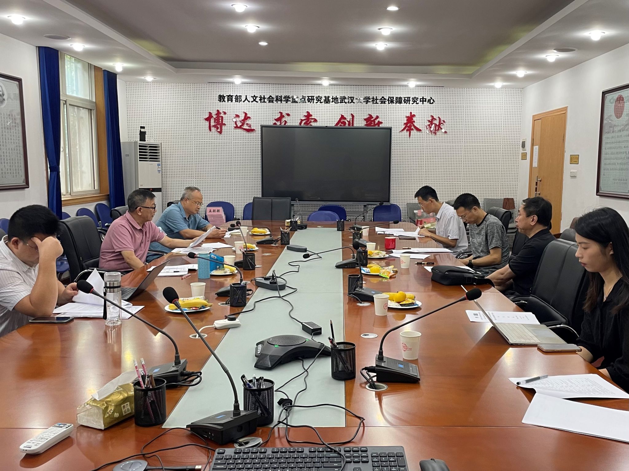為(wei) 了進一步加強課題的過程性管理和後續研究工作,2023年8月18日上午,教育部哲學社會(hui) 科學研究重大課題攻關(guan) 項目“退役軍(jun) 人社會(hui) 保障問題研究”研討會(hui) 在武漢大學社會(hui) 保障研究中心召開。本次會(hui) 議由武漢大學社會(hui) 保障研究中心學術委員會(hui) 主任、項目首席專(zhuan) 家鄧大鬆教授主持,中南財經政法大學呂國營教授、陸軍(jun) 勤務學院鄭傳(chuan) 鋒教授、世界杯直播网副院長王增文教授、武漢大學社會(hui) 保障研究中心主任向運華教授、中心副主任薛惠元副教授等子課題負責人,湖南大學公共管理學院助理教授楊晶博士、首都經濟貿易大學勞動經濟學院講師張怡博士、中心博士生段亞(ya) 男等課題組成員參加了會(hui) 議。