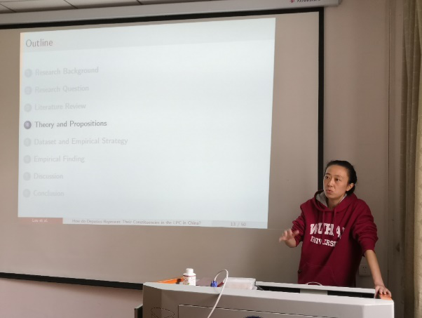 2019年11月7日,政管院青年學術團隊沙龍於(yu) 學院317教室舉(ju) 行,本期的交流題目為(wei) “How do Congressional Deputies Represent Their Constituencies in the Local People's Congress in China?——Evidence from a Municipal People's Congress in Central China”,主講人為(wei) 樓笛晴副教授,主持人為(wei) 田蘊祥副教授。本次活動由政管院教師教學發展中心主辦。