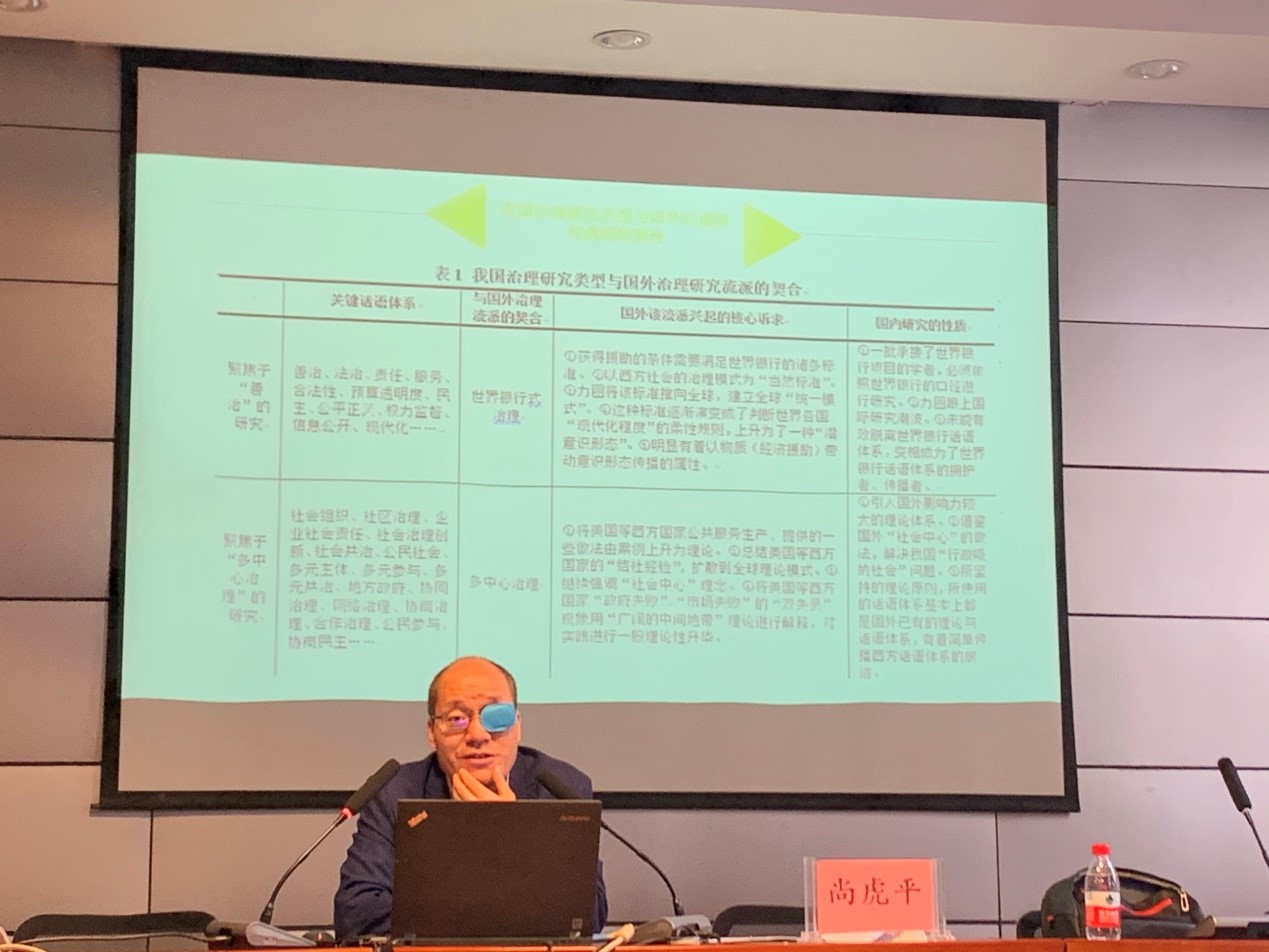 尚虎平教授首先介紹了利用CiteSpace軟件在CSSCI數據庫中麵向“治理”研究主題的聚焦規律挖掘結果,發現當前中國治理研究主要聚焦於(yu) “善治”、“多元治理”、“全球治理”、“國家治理”四個(ge) 方麵,前三類研究主要傳(chuan) 播了西方話語體(ti) 係,而後者卻無限擴大了國家治理的外延,模糊了其內(nei) 涵。