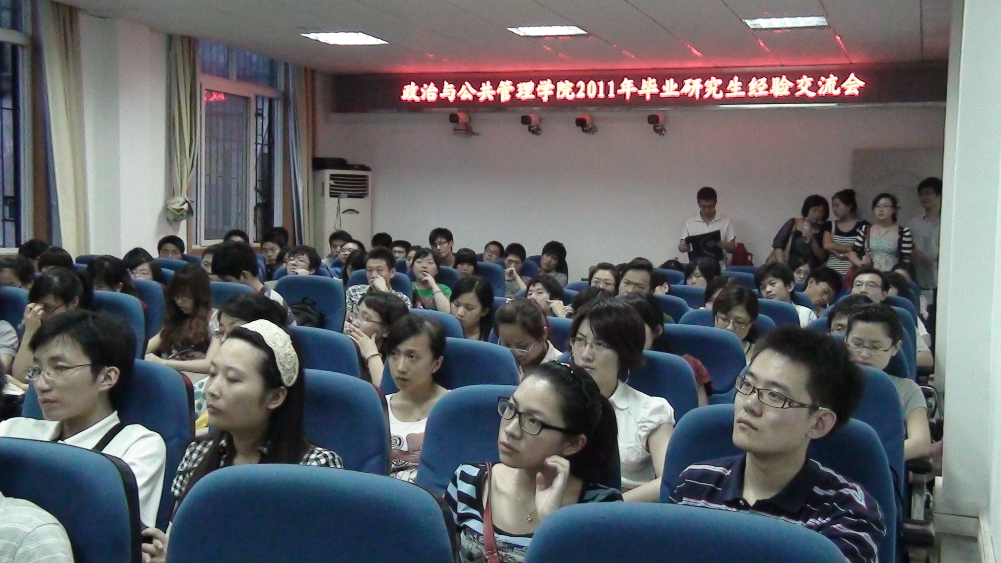 6月16號晚,學院2011年畢業(ye) 生經驗交流會(hui) 在院310多功能報告廳成功舉(ju) 辦,能容納百餘(yu) 名同學的報告廳座無虛席。本次活動旨在增進與(yu) 研二師兄師姐之間的交流,充分吸取他們(men) 在找工作、考公務員、考博等方麵的經驗教訓以及心路曆程,為(wei) 即將步入下一個(ge) 人生選擇階段的研一同學們(men) 提供借鑒。
