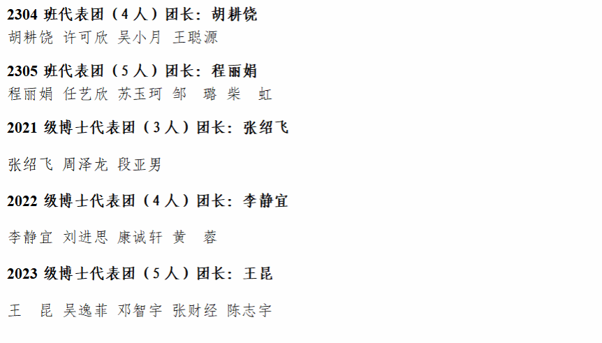 根據《武漢大學研究生會(hui) 章程》《世界杯直播网研究生會(hui) 章程》《武漢大學校院兩(liang) 級研究生代表大會(hui) 代表選舉(ju) 規範》規定,經各班級團支部差額選舉(ju) 產(chan) 生了正式代表86名。代表包括本院2021、2022、2023級全部專(zhuan) 業(ye) 的碩士及博士研究生,覆蓋學院各年級,具有廣泛的參與(yu) 性和代表性。