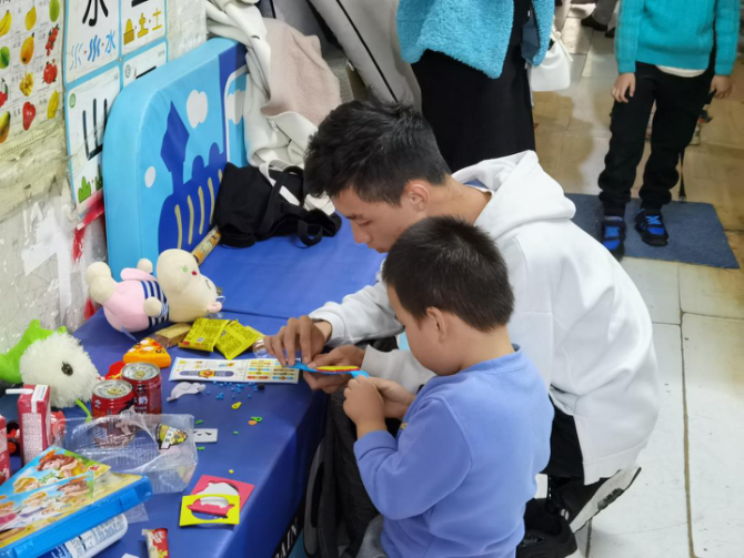 隨著遊戲的進行,小朋友們(men) 逐漸向誌願者們(men) 打開心扉,誌願者們(men) 也慢慢走進她們(men) 的內(nei) 心世界,探尋她們(men) 的情感需求。心與(yu) 心之間的距離漸漸拉近。在誌願者的陪伴下,小朋友們(men) 在各自感興(xing) 趣的領域“大展拳腳”,有的搭建積木,有的比拚繪畫,有的製作手工貼紙等等。