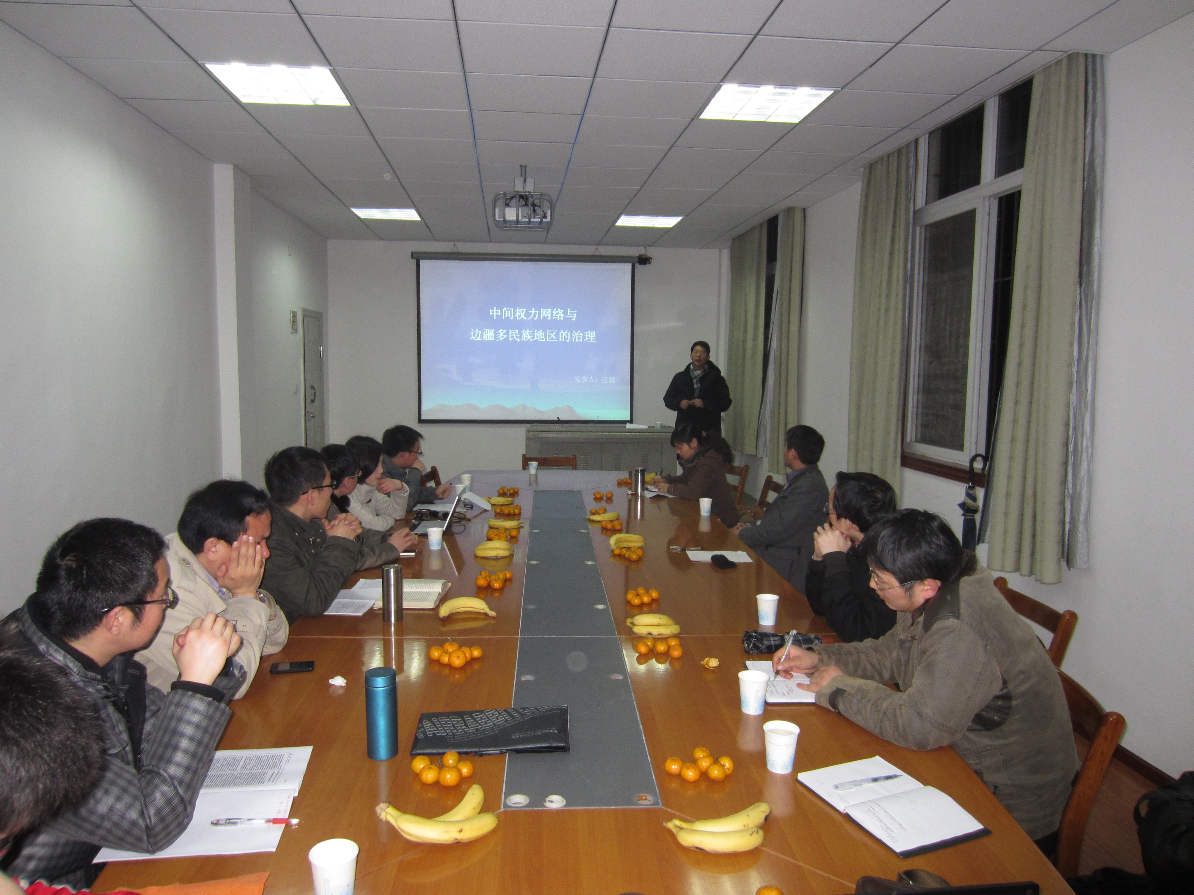 政治學博士研究生學術沙龍第四期於(yu) 3月15日晚在學院317教室舉(ju) 行,本期的主題為(wei) “中間權力網絡與(yu) 邊疆多民族地區的治理”,主講人為(wei) 中南民族大學張燚博士。點評嘉賓為(wei) 儲(chu) 建國教授,主持人為(wei) 侯讚華博士。