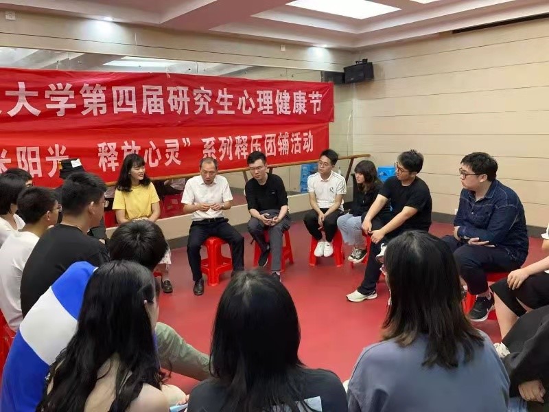 其次,全體(ti) 成員進行分組,分別進行自我介紹相互熟悉,各組成員互訴心聲,分享本周的所曆所感,並傾(qing) 訴了自己的壓力和煩惱。
