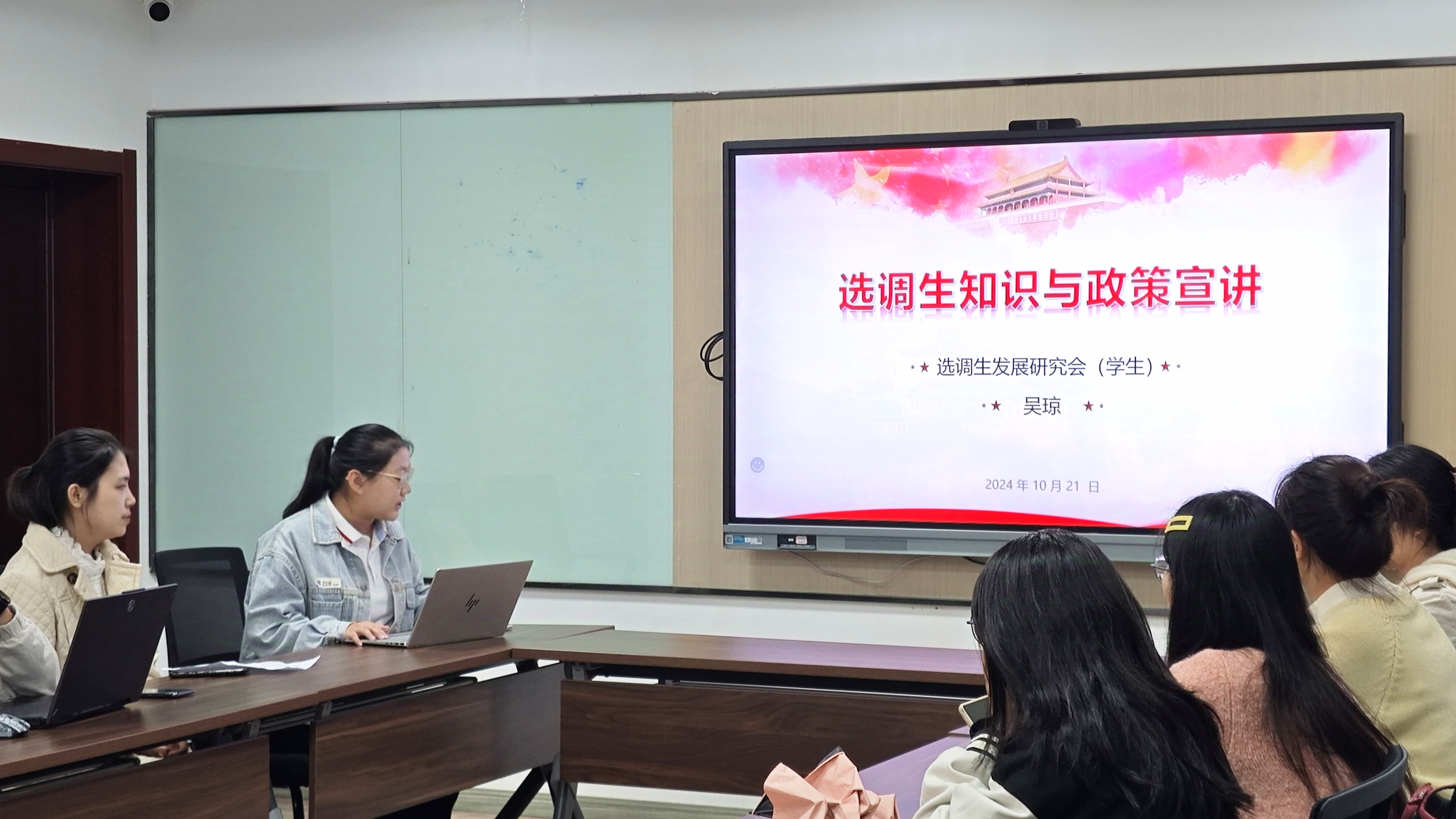 選調生作為(wei) 黨(dang) 和國家幹部隊伍的生力軍(jun) ,承載著時代的使命與(yu) 未來的希望。我院始終致力於(yu) 培養(yang) “國際視野”與(yu) “家國情懷”兼備的新時代國家治理人才,鼓勵青年學子將個(ge) 人理想融入國家發展大局,投身基層,服務人民。為(wei) 了讓研究生同學更加深入地了解選調生工作的最新政策走向、報考與(yu) 備考相關(guan) 知識,學院研究生會(hui) 發展聯絡部於(yu) 2024年10月21日在人文館106會(hui) 議室舉(ju) 辦“選調生知識與(yu) 政策”宣講會(hui) 。本次活動邀請武漢大學選調生發展研究會(hui) (學生)講師吳瓊同學為(wei) 大家普及選調生的相關(guan) 知識與(yu) 政策,宣講會(hui) 由學院研究生會(hui) 未來學院發展聯絡工作組學員劉思邑同學主持。