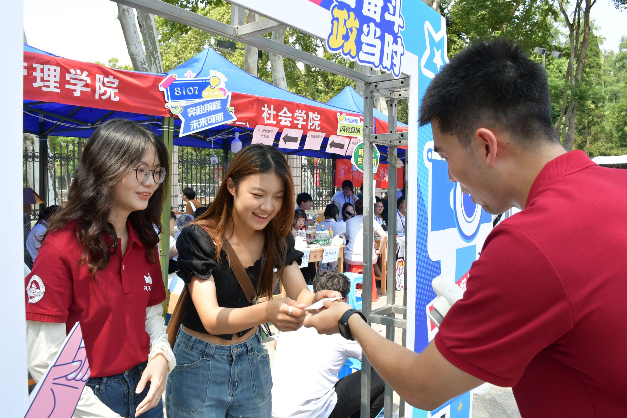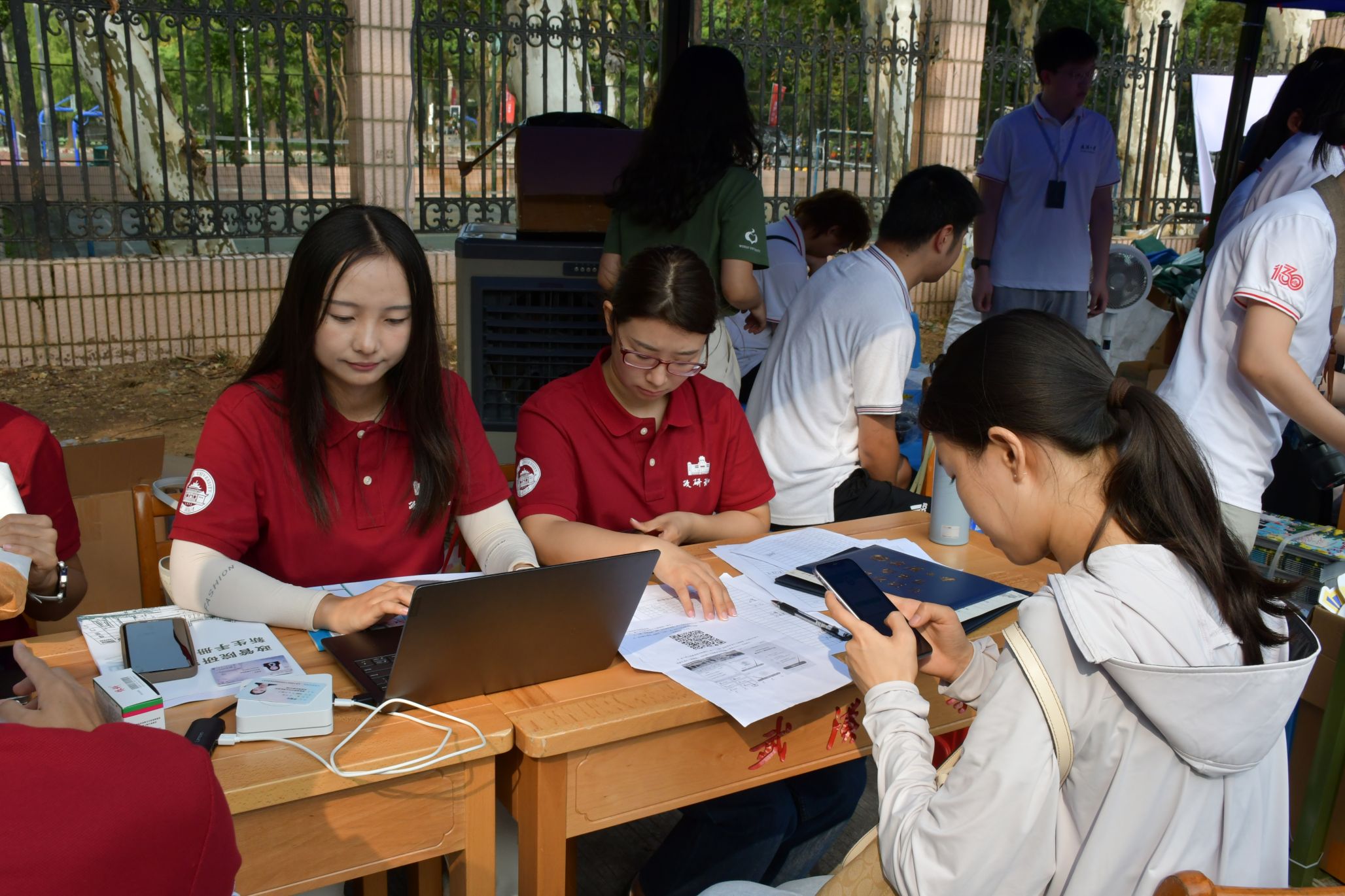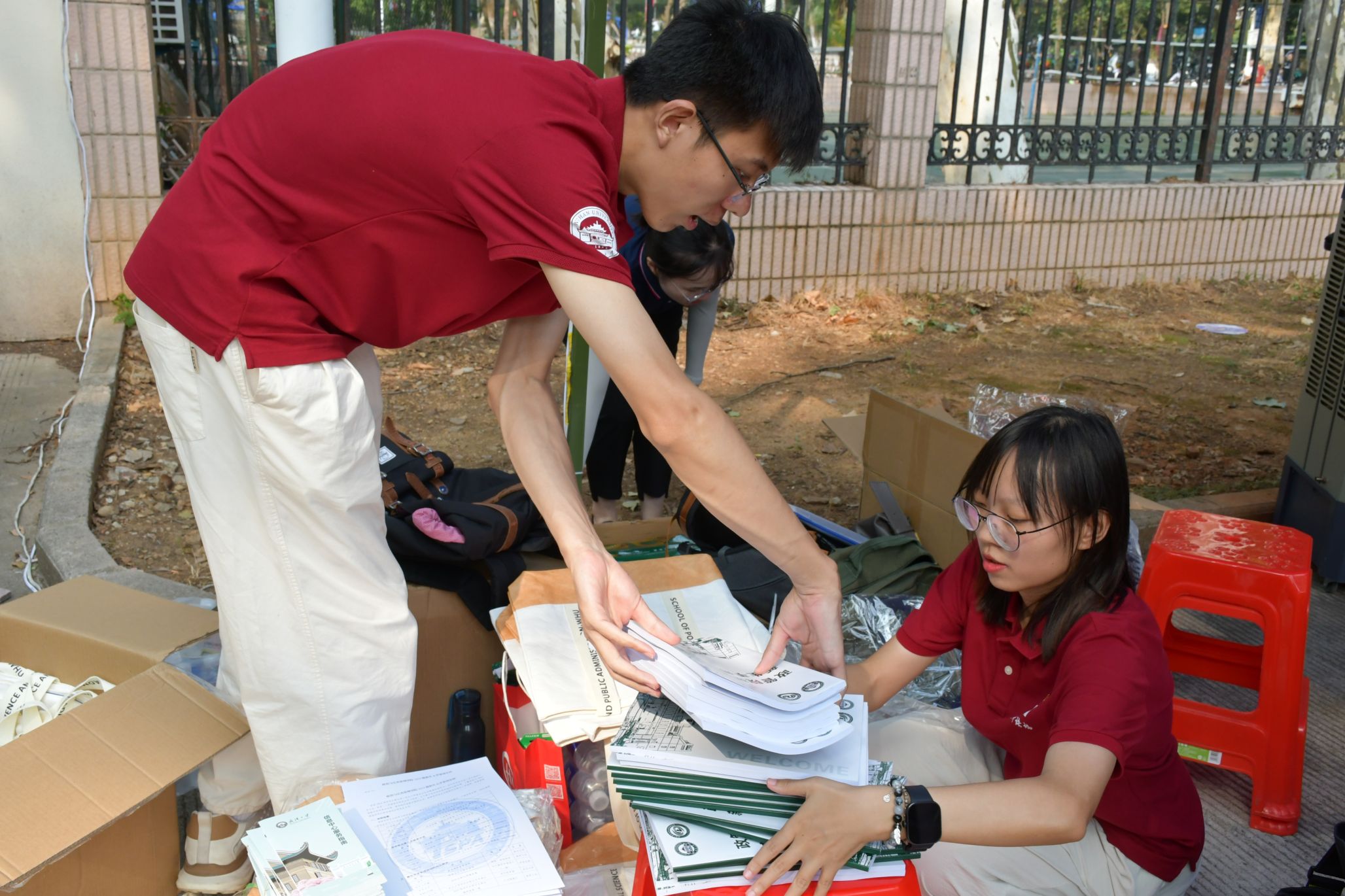 誌願者們(men) 互相整理著裝,胸口的黨(dang) 徽熠熠生輝,這是青春路上最亮麗(li) 的一道光輝。他們(men) 滿懷熱心期待著萌新們(men) 的到來,有序進行核驗證書(shu) 、激活校園卡、簽到簽領、領取大禮包等工作,幫助2024級政管院碩博新生順利入學,正式成為(wei) 珞珈山的主人。