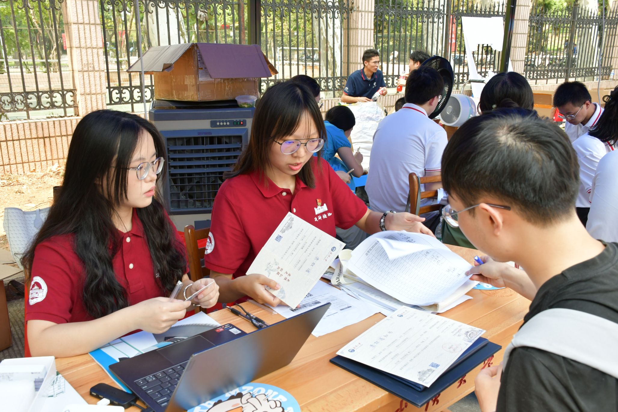 誌願者們(men) 積極投身於(yu) 迎新活動,他們(men) 不僅(jin) 耐心地與(yu) 排隊等候的新生進行親(qin) 切交流,解答他們(men) 關(guan) 於(yu) 入學的一切疑問,還細心地引導家長們(men) 有序等候,並陪伴新生拍攝入學照片,定格下這踏入校園的珍貴瞬間。在協助新生順利完成入學登記的過程中,誌願者們(men) 與(yu) 新生之間洋溢著熱情與(yu) 友愛的交流氛圍,這些溫馨而動人的互動場景被鏡頭一一捕捉,化作了一段段珍貴的記憶,為(wei) 新生們(men) 的研究生生活開啟了美好的序章。