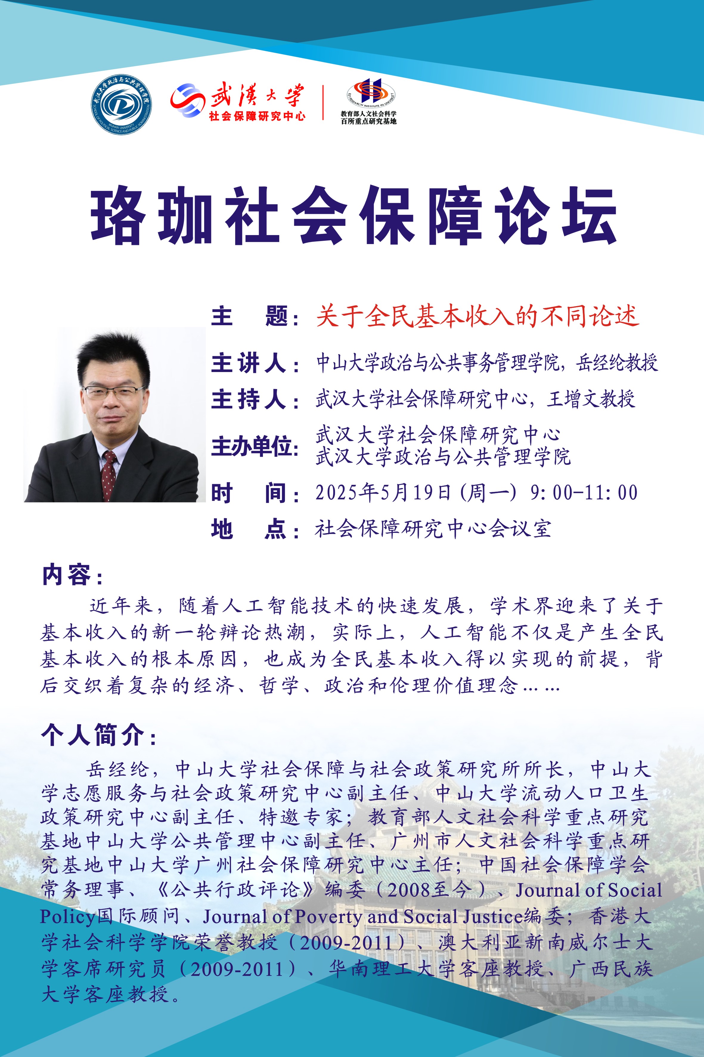 【講座預告】珞珈社會保障論壇 | 關於全民基本收入的不同論述-世界杯直播网