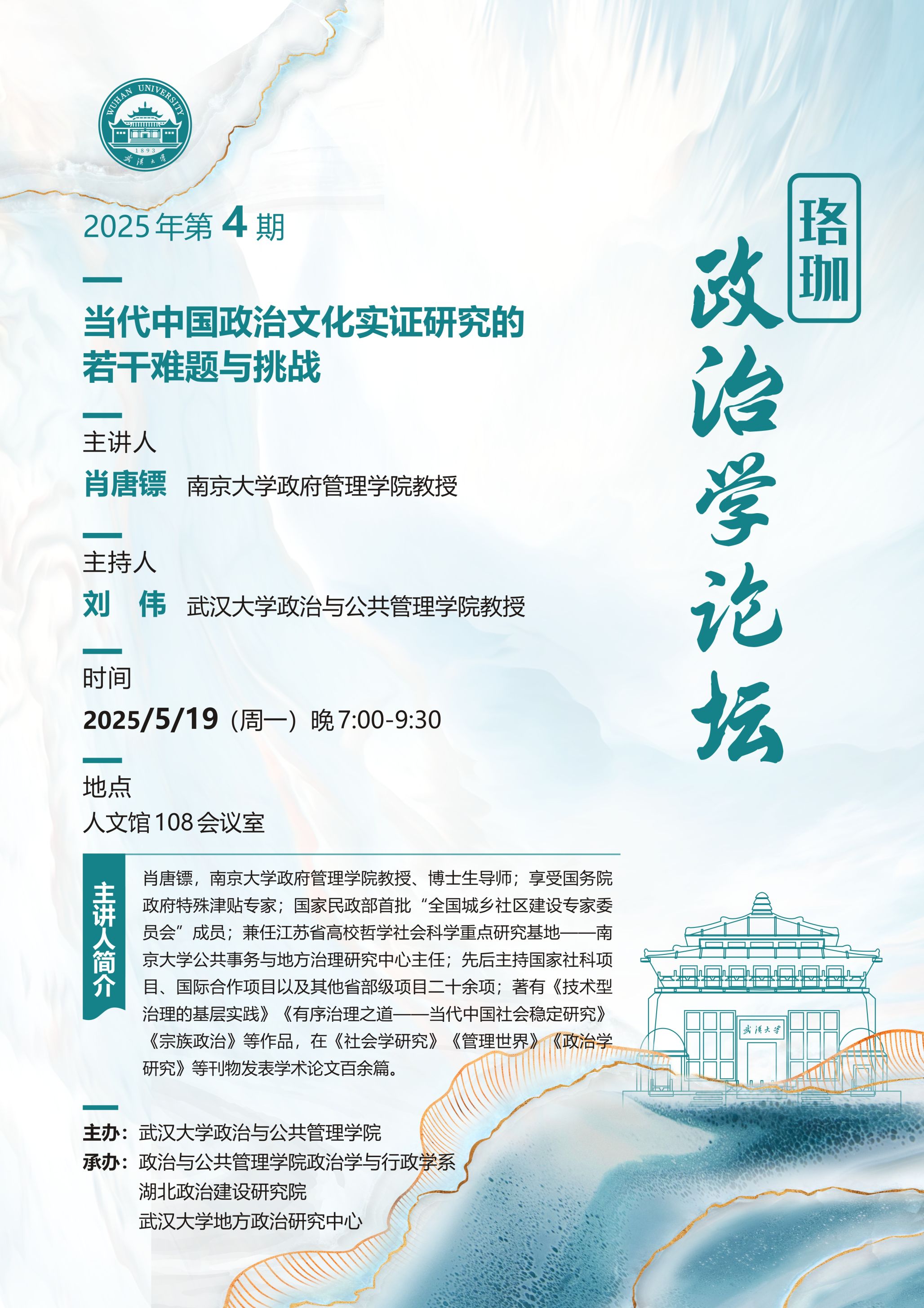 【講座預告】珞珈政治學論壇 | 當代中國政治文化實證研究的若幹難題與挑戰
